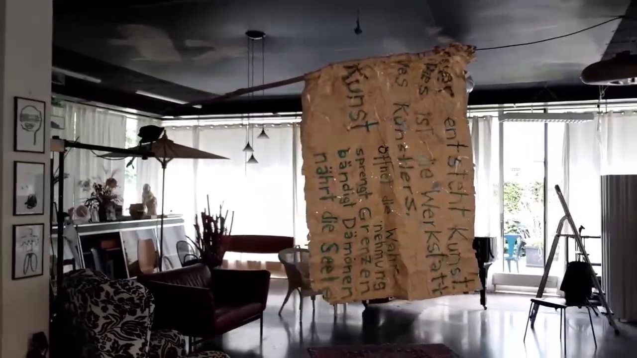 Die Fahne „Kunst“ hängt bereits im Raum.