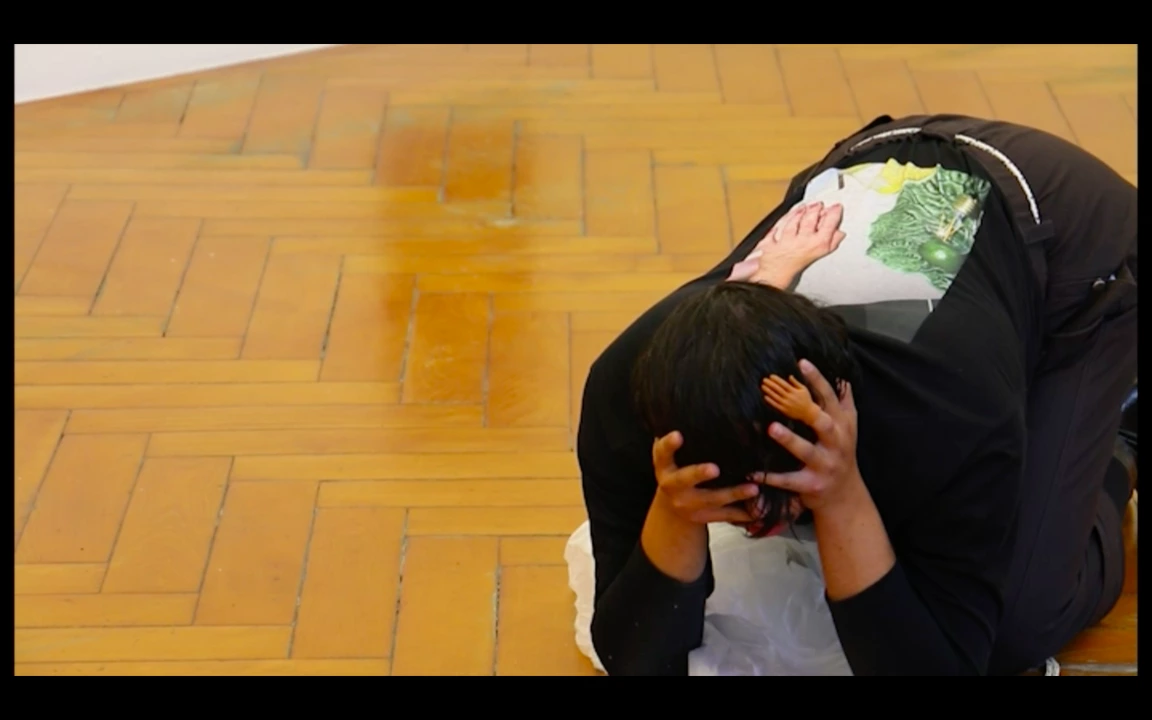 ersten Raum wiederholt sich auf dem T-Shirt des Performers. Persönliche Anekdoten werden im Kontext der