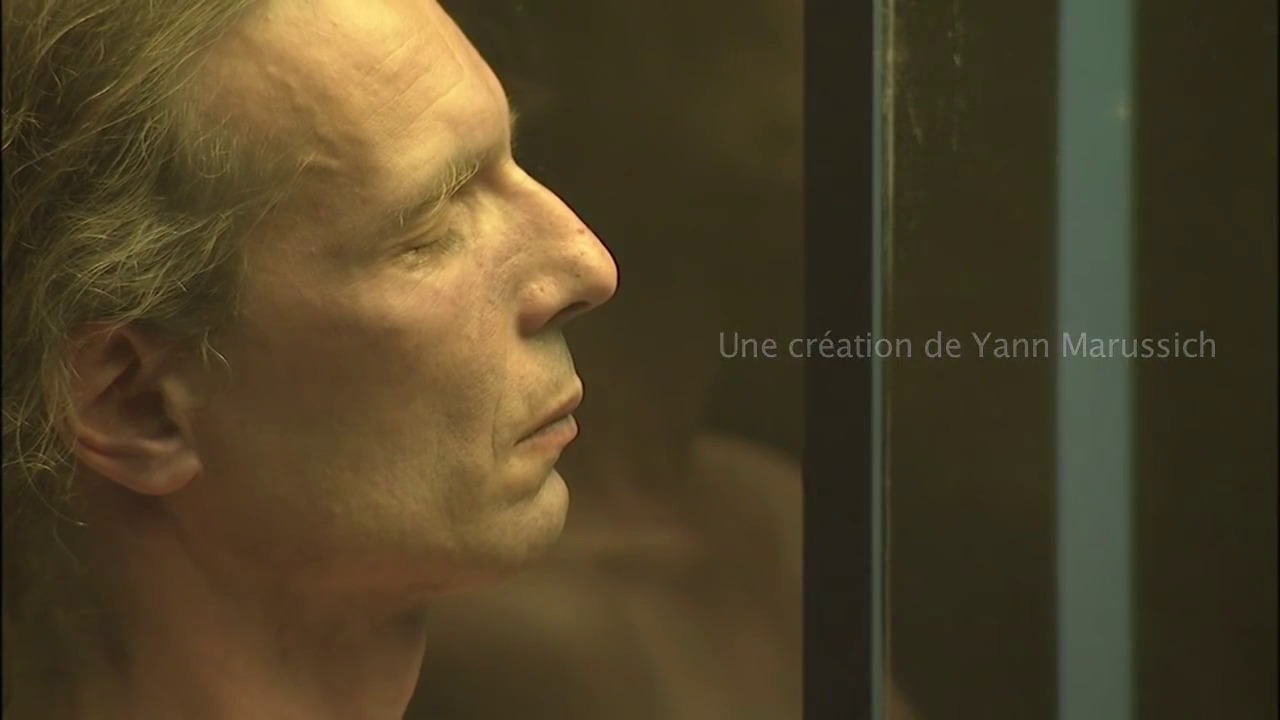 Son corps est immobile, yeux clos, yeux ouverts. Petit à petit commencent à rouler sur ses joues des larmes bleues, il pleure bleu. De son nez une morve bleue, de sa bouche s'écoule une bave bleue, de ses aisselles une sueur bleue et maintenant sur son front, sur son dos, sur son ventre, sur ses jambes, tout son corps suinte bleu. Toujours à la recherche de cet homme universel, il reprend l’essentiel de Bleu Provisoire, le malaxe, le transforme, le métamorphose pour ébranler les sens et mieux dévoiler cette réalité humaine vulnérable. Grâce à ses mouvements invisibles, au regard et à sa transpiration bleue rendue visible, Yann Marussich parvient à intérioriser notre extérieur et à conscientiser notre inconscient.