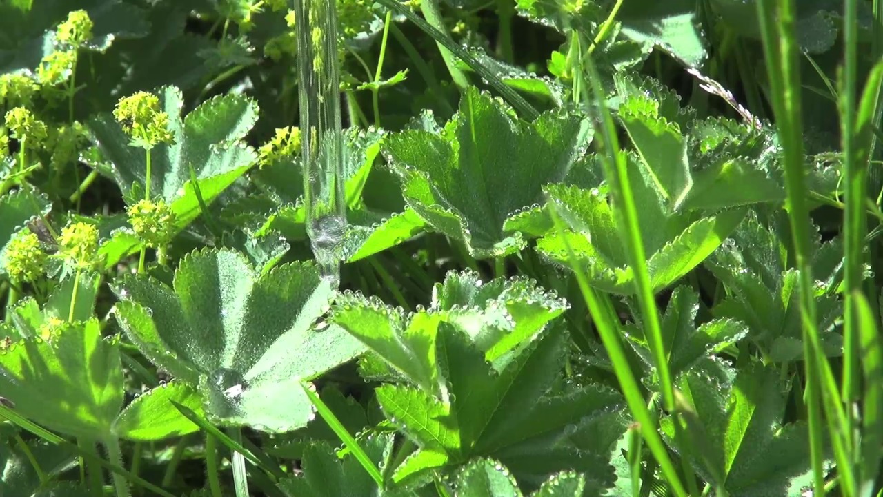 - Video, 2:43 min, Loop Glasflasche mit 0.5l Guttationstropfen der Pflanze Alchemilla