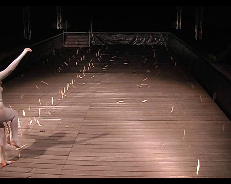 Für die Performance von Irena Kulka wurde der Swimming Pool des Barons Von der Heydts gewählt (bzw. vom Museum angeordnet). Eine zwiespältige Bühne inmitten dieses magischen Natursuchortes. Im Pool bot sich eine Installation an (von Irena Kulka), aus verwitterten Blättern des Südens, schwebend zwischen vergänglicher Natur und fragiler Struktur. In diesem Feld fand der Tanz statt, aus der Tiefe des Pools in ein Vorwärtsstreben entlang der Fadenstruktur und in Richtung von Menschen, zu Menschen fühlend. Die Spiegelungen eines fragmenthaften Lebens brachen aus der Bewegung auch in kurzen sprachlichen Äusserungen zum Publikum durch. Die Bewegung verhedderte sich in den Bahnen, verriss die feinen Fäden. Das Publikum folgte der Performerin zum versteckten kleinen Pool, hier in der Dunkelheit und Wut provokativ artikulierte Fragen an das Leben.