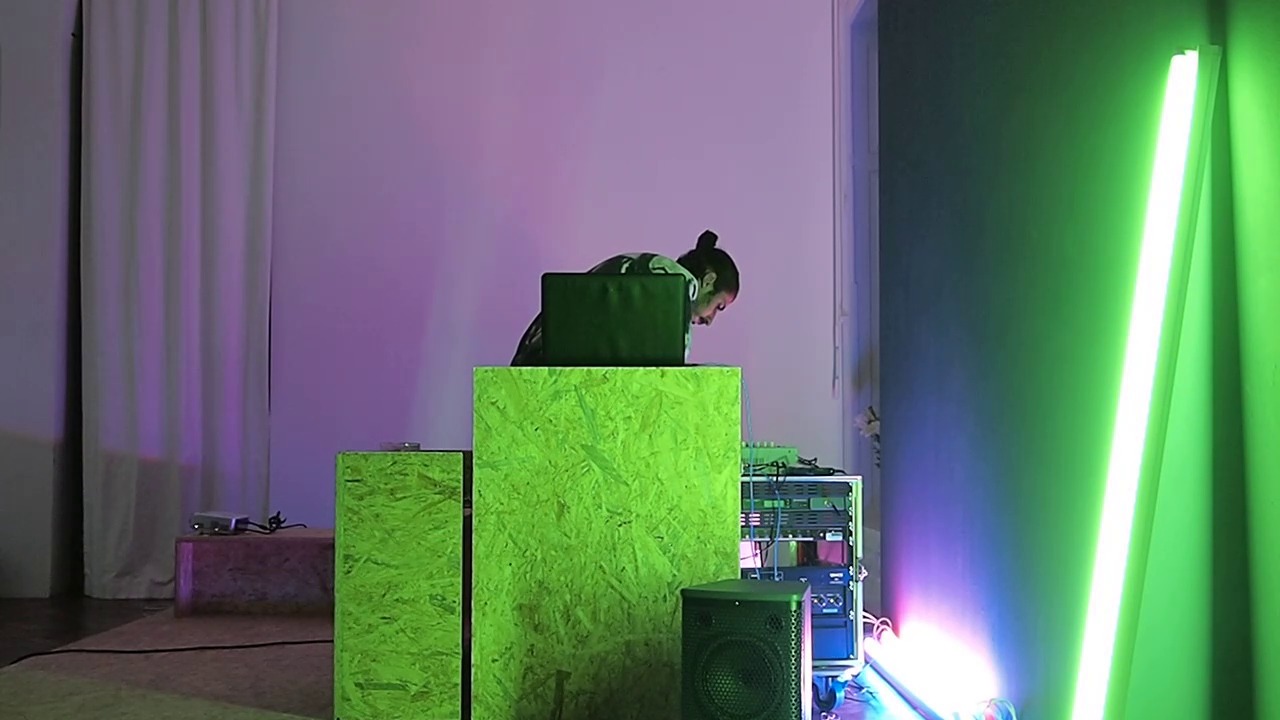 - Genres:Multimediaperformance;Handlungen:aktivieren;Materialien:Ausstellungsobjekt;Mittel:Elektronische Musik;Räume:Ausstellungsraum;Materialtyp:Dokumentation einer Performance