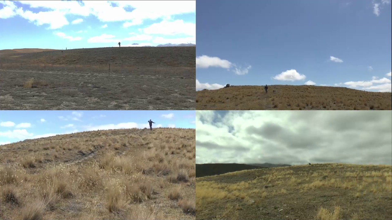Ich renne jeweils von hinter der Kamera auf den Horizont zu und wieder zurück hinter die Kamera, wo ich die Aufnahme stoppe. Die Aufnahmen sind im Loop gezeigt, so renne ich ständeig zum Horizont und wieder zurück.