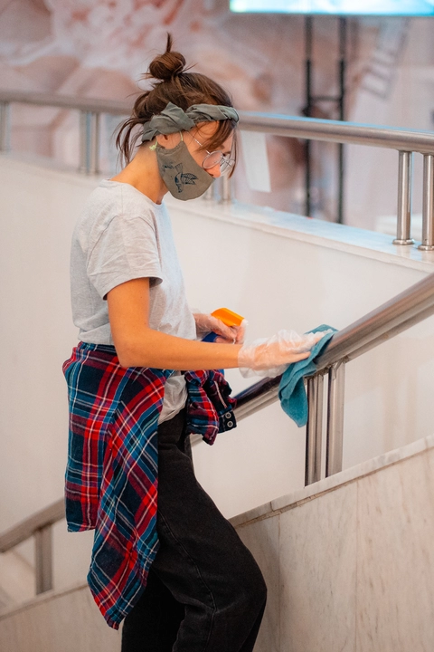 Public programme questioning Social rituals: Make cleaners visible. Invisible function, before or after an event. Making hidden work visible Cleaning, disinfecting the Covid, security paranoia Free time, leisure versus work Body at work, social body
