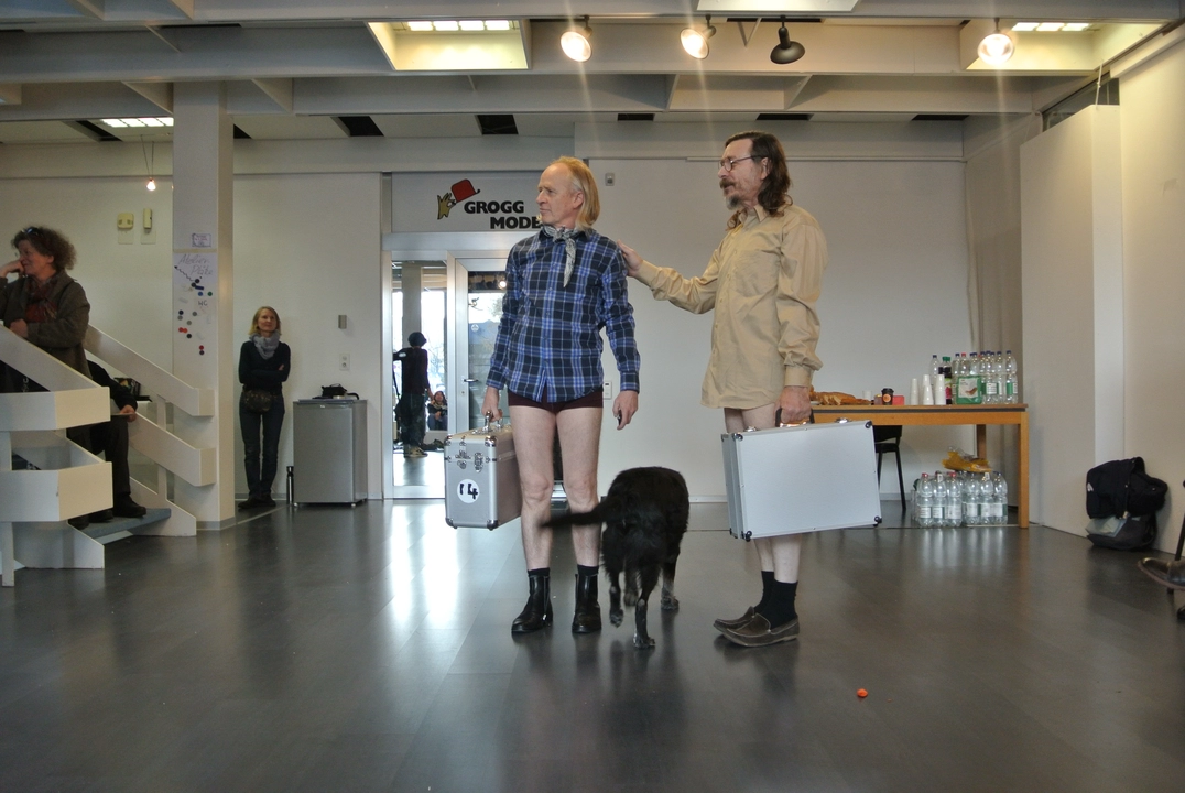 - Genres:Szenische Performance;Bezüge:Dada;Qualitäten:humorvoll;Mittel:Kostüm;Mittel:Partizipation;Players:Duo;Materialtyp:Dokumentation einer Performance
