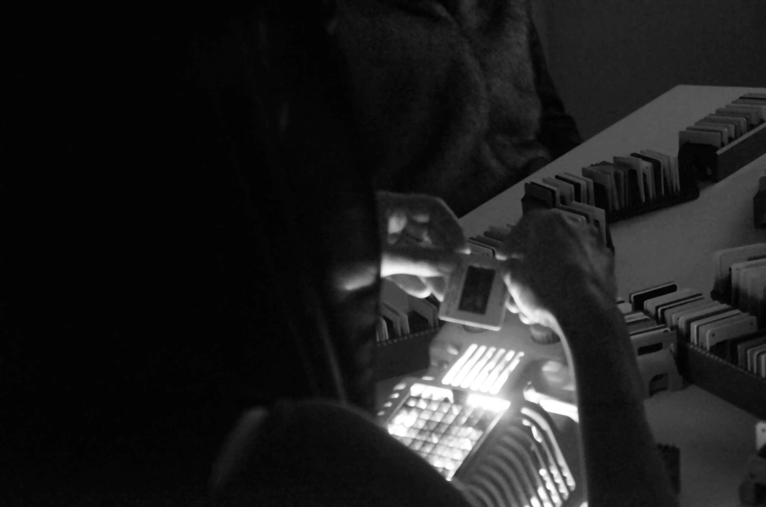 Materials: an archive of slide pictures, a slide projector, a narrator, audience