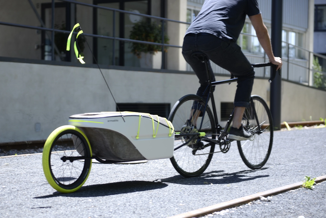 Die Form besteht aus leichten und stabilen Flachsfasern. Drei Fächer sorgen für Ordnung und das Gepäck wird vor Regen, Schmutz und Diebstahl geschützt. Eine integrierte Reisetasche erleichtert das Bepacken und Sperriges wird auf den Deckel gespannt. Im Alltag finden Einkäufe ihren Platz. Die Montage ist einfach und die Handhabung der Kupplung ist komfortabel. „Armadillo“ bringt ein neues Bild auf die Strassen.