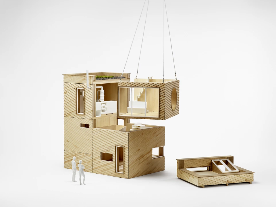 Gebäudehülle aus Vollholz ist praktisch keine Heizung notwendig. Das Wasser-, Strom- und Abwassersystem ermöglicht autarkes Wohnen für mindestens 30 Tage. Durch seine Bauweise in Modulen lässt sich LIVO per LKW an einen neuen Standort transportieren und binnen eines Tages wieder aufbauen. Wiederverwendbare Schraubfundamente bieten fast unbegrenzte Standortmöglichkeiten, sowohl in Wohnzonen als auch auf Industriebrachen mit Zwischennutzung. LIVO produziert keine Abfälle, sondern verwertet diese. Modular und autark, in Kreisläufen denkend und klimaneutral. Nach dem Vorbild der Natur gebaut.