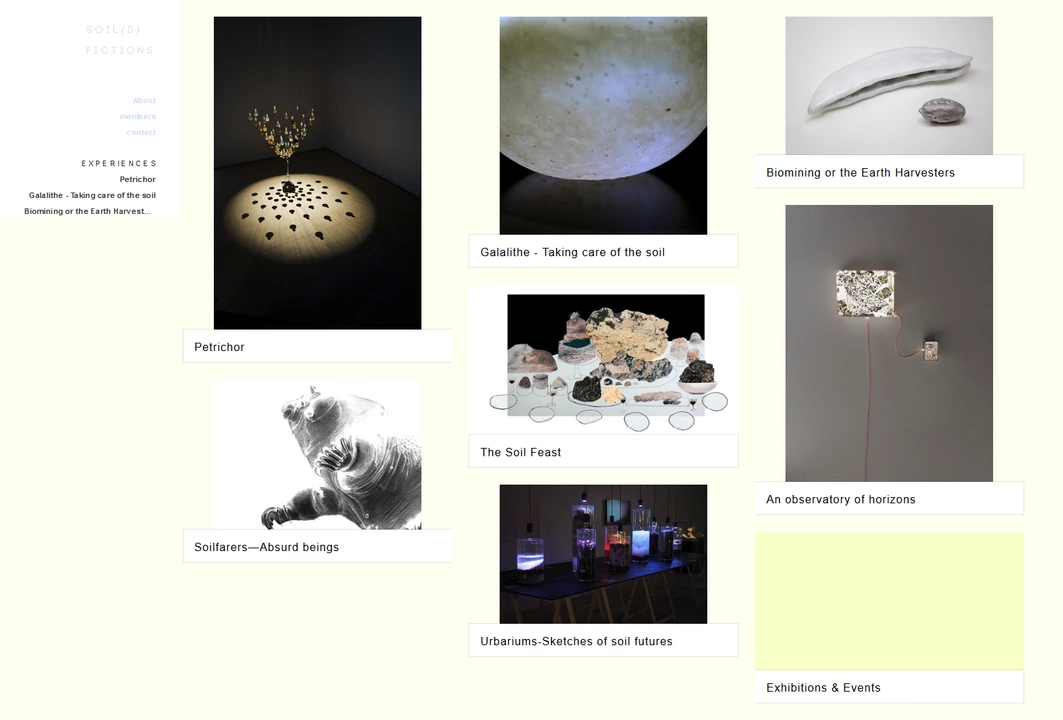To spark a discussion, the LAB set the hypothesis that the division between disciplines had never occurred. Thus, at the interface between art and science, the Soil Fictions exhibition takes the form of an imaginary cabinet, the lab of a “soil researcher” that displays a range of experiments arising from different soil expertises. It is composed as a sensorial and imaginary journey blending approaches, methods and tools, yet, without losing sight of reality.