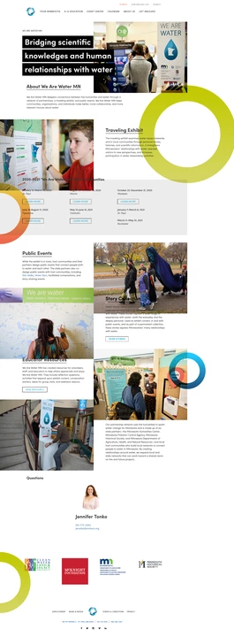 “We Are Water MN” explores the connections between the humanities and water through an exhibit, public events, and educator resources. Visitors reflect on local stories and the meaning and experiences of water in Minnesota with space to add their own stories. By creating relationships around water, we are creating networks that can promote positive social norms, and share a vision for and participate in water stewardship.