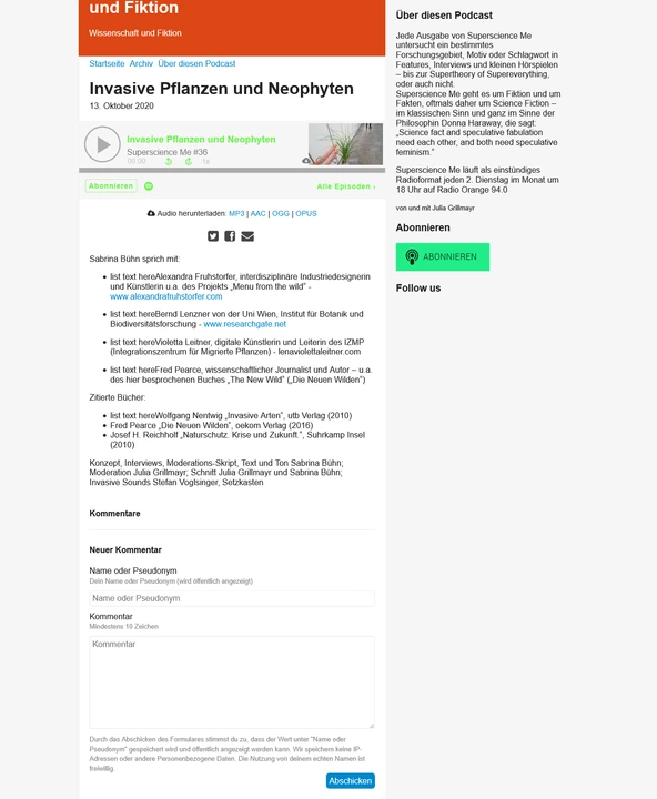 Dieser Hörbeitrag zum Thema „Invasive Spezies – Aliens unter uns“ ist der erste seiner Art vom Postcoronal Lab. Den Neophyten, als besonders leicht zu beobachtende, weil meist verwurzelte Spezies, ist diese Folge besonders gewidmet.