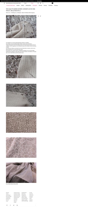 "Die Motive der Textilien sind inspiriert von der Problematik am Aralsee, welcher durch Baumwollanbau kurz vor dem Austrocknen steht. Die Gewebe sind in zeitlosen Weiß- und Beigetönen gehalten und mit hochwertigen Webtechniken hergestellt, einige Stoffe sind zusätzlich bestickt. Die Kollektion soll zeigen, dass sich sehr edle Stoffe aus Hanf herstellen lassen."