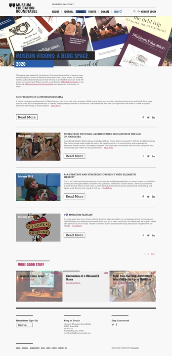 "Formed in 1969, the Museum Education Roundtable fosters professionalism among museum educators by encouraging leadership, scholarship and research in museum- based learning. MER provides leadership in professional development for a broad and diverse audience of museum practitioners and educators. Through its publications, programs, and active communications network, MER: