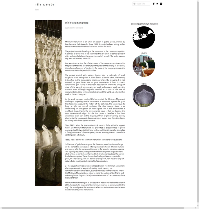 The project is a critical reading of the monument in the contemporary cities. It consists of thousands of ice sculptures that are taken to central places in cities and with help from the passers-by, are left to melt. The sculptures are tiny men and women, 20 cm tall.