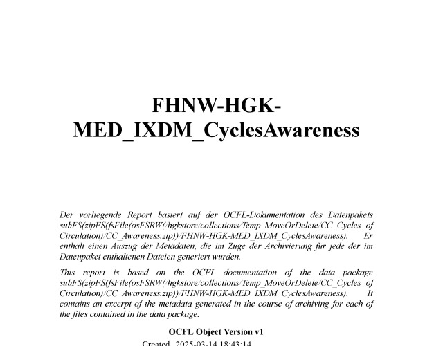 The secition AWARENESS of the project >Cycles of Circulation< contains 486 files in 141 folders with a data volume of 536 MB.