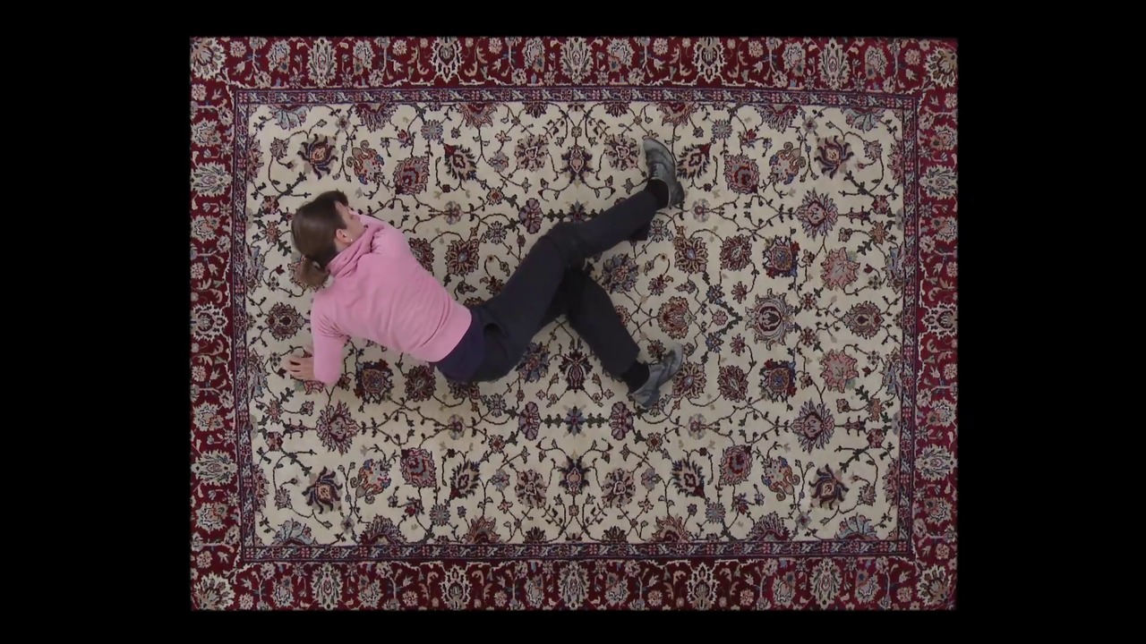 As a child, Edith Hänggi played on a Persian "Sarouk" carpet. In her video she turns it into a stage again, jumps onto it for a brief moment and then back off, performing a slapstick-like climb on its ornaments. Since this kind of carpet was considered a middle-class status symbol during the 1960s, her humorous gestures play on the shift in meanings and values.
