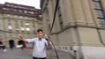En tant que performeur au centre, j'agite mon téléphone portable autour de moi en mode selfy et j'accélère ma rotation jusqu'au décollage...