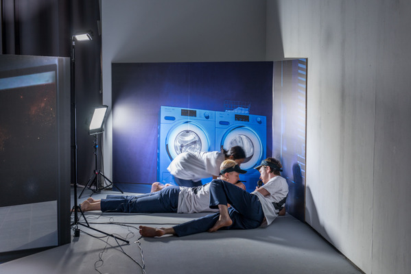 Alex e Bobby parlano con un copione in mano, sul pavimento, in una scenografia fatta di cartoncini stampati che raffigurano immagini 3D di spazi interni. Accanto ad A e B, un terzo personaggio chiamato 'Camera' con una telecamera in mano, riprende la conversazione. Un doppio monitor trasmette la performance inquadrata al pubblico, insieme a un feedback preregistrato.