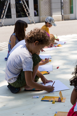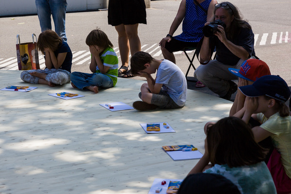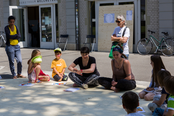 L'artista ha colto l'occasione per invitare i bambini a partecipare al nuovo piano regolatore. Durante una sessione di un'ora ha spiegato la storia e l'uso attuale del Kasernenareal e ha chiesto loro di disegnare le loro visioni per il futuro.