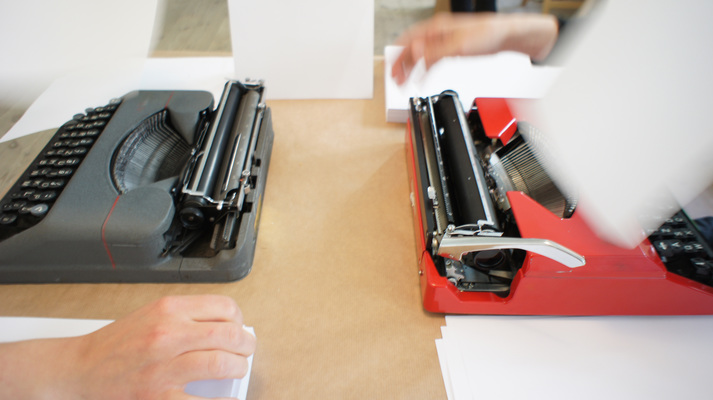 Il materiale per la performance Analogue Chat è costituito da un tavolo, due sedie, due macchine da scrivere meccaniche e una pila di carta bianca A4 del peso di 80 g/m2. La performance inizia con Marion Ritzmann che si siede a un lato del tavolo e digita le parole sulla sua macchina da scrivere: