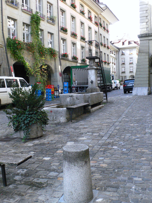 Der Berner Künstler Carlo E. Lischetti (1946 – 2005) hat 1992 als Kunstprojekt eine Metalltreppe mit Geländer und einer Plattform realisiert, worauf jede/jeder eine lebendige Brunnenfigur sein kann. Seitdem nennt man diesen Brunnen Lischetti-Brunnen.