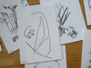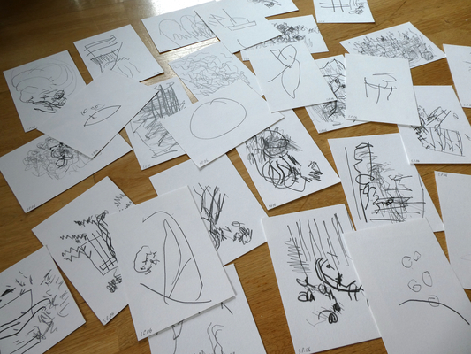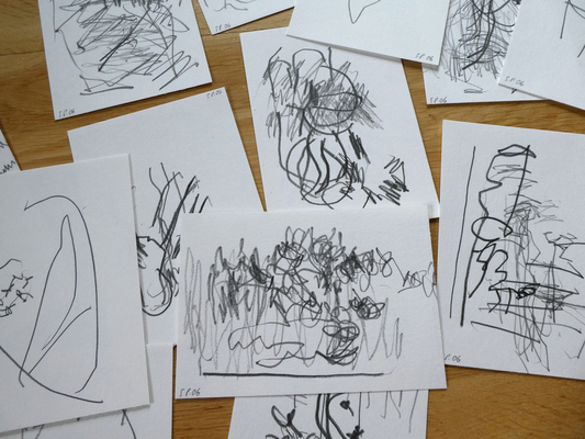 Zur Vorbereitung der Performance habe ich eine Rekognoszierungsreise nach Bern gemacht und mir diesen Ort und die nähere Umgebung fotografisch erschlossen. Den Brunnen habe ich mit insgesamt 29 kleinformatigen, abstrakten Zeichnungen, Bleistift auf Papier, 10,5 x 14,8 cm, 2006 erschlossen.