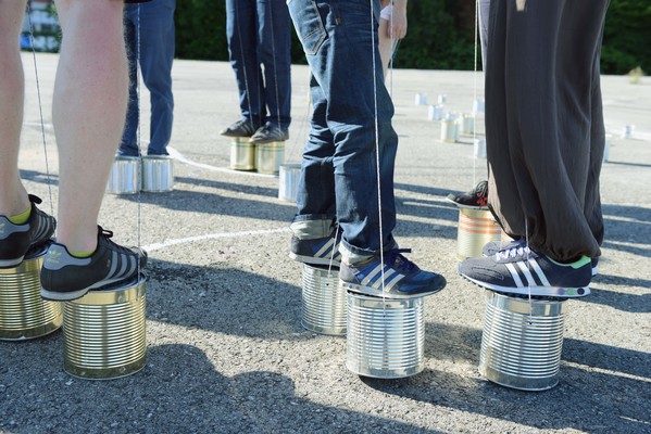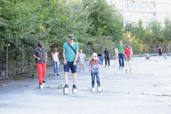 Entre le 15 et le 23 août 2015, le festival Living Room a fait naître un espace d'habitation en constante transformation sur la friche du stade de Zurich. Des artistes ont présenté des travaux qui s'interrogent sur le rapport entre privé et public, les espaces de signification imaginaires et le potentiel culturel du lieu. Des installations, des performances et de la musique ont créé des espaces de possibilités qui invitaient les visiteurs à faire leurs propres découvertes. Un projet du Café des Visions. Dans le cadre de ce festival, lerjentours. Agentur für Gehkultur (Marie-Anne Lerjen) a proposé une exploration de l'espace sur des boîtes. Faire le tour de la grande place ouverte sur des boîtes de conserve a permis de découvrir de nouvelles perspectives sur l'espace.