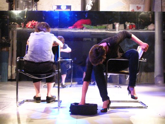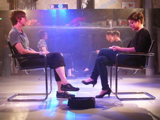 Le setting et le titre de la performance s'inspirent du format du talk-show à la télévision. Assises de manière "ordonnée" au début, les positions et les postures des performeuses deviennent de moins en moins conventionnelles au fil du temps.
