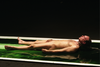 A man lies down naked on a dance mat coated with green-tinted oil. A rope which stretches to a winch 13 metres away is tied around his neck. Yann Marussich’s performance has no specified duration. Anyone can activate the winch, and when they do, the rope coils, pulling the performer by the neck. Thus begins a sadistic (for the audience) and masochistic (for Marussich) crossing.