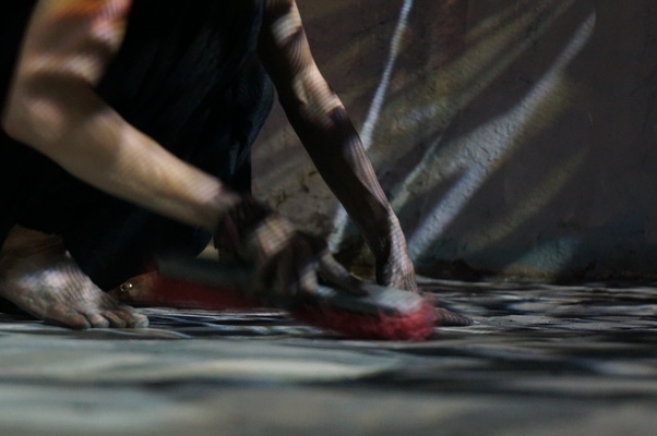 The endlessly repetitive actions of the two artists reminded of a mantra, the same again and again and yet constantly shifting.