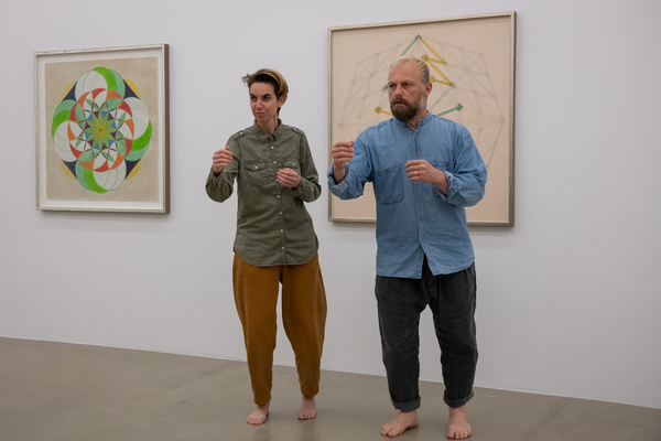 Based on the artist’s recurrent research, TWELVE THOUSAND TWENTY is part of an ongoing work process on sound frequencies and their field of application. Between dance and happening, Interspecies communication embodies a form of non-verbal communication: movement, gaze and breath unite the performers in an intense communion, drawing the audience into their inner resonance.