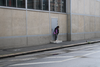Je continue à descendre la rue, dans un sens et dans l'autre, tandis que de la poudre blanche continue à sortir de mon sac (rose).