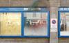 Durante il vernissage, ho creato un disegno a miccia con cartucce di fumo colorate in una vetrina come parte di un'azione performativa.