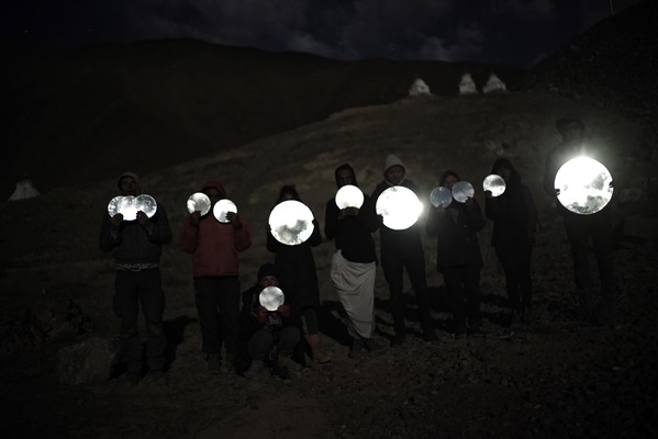 On the day of the full moon (October 13, 2019), I've invited the artists in residence and other local people to come and contemplate the moonrise, and for a collective action: using thirteen mirrors to form the 13 full moons of an entire year. Without moving, look for the reflection and be like the moon reflecting the sunlight.