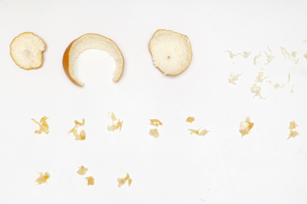 6. Underwhile peel the orange carefully and arrange the peeled orange zest in a chronological order