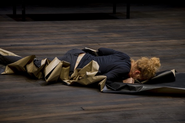 La performance porte sur l'éphémère. Gisela Hochuli frotte deux bouteilles d'argile l'une contre l'autre. Il en résulte des bruits allant de stridents, grinçants, obliques à terreux, sourds, bruissants. Elle pose des coussins de canapé noirs sur le sol dans différentes formations. Elle rampe sur un papier noir qui se contracte alors comme une peau d'écaille. Elle fait glisser des pots en plastique noir sur la table et les laisse tomber dans le vide. Elle saisit un buisson de cierges royaux desséchés et court dans tous les sens. Elle étale un tissu noir sur la table et se déplace sous le tissu d'un bout à l'autre de la table.