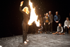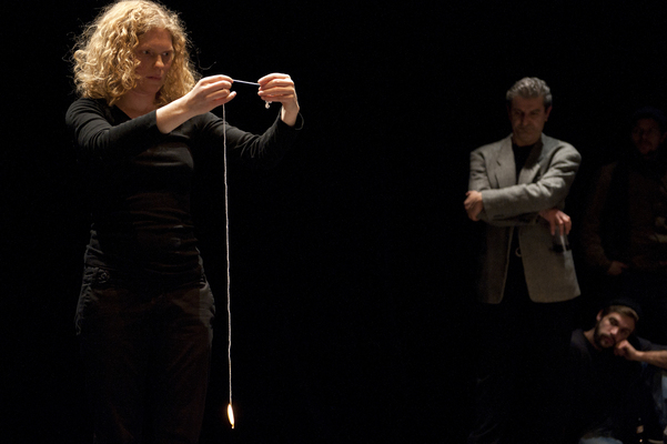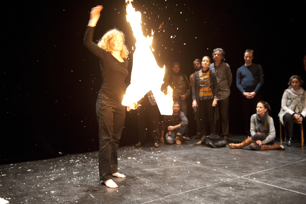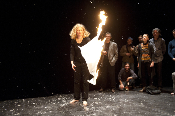 Cette performance traite du changement constant, de la transformation et de la dissolution de la matière ainsi que de la modification de la corporalité et de l'expression. Pendant que la première bougie brûle, Gisela Hochuli laisse une flamme dévorer le fil d'un fil. Pendant la durée de la deuxième bougie, Gisela Hochuli enflamme des papiers de soie. Ceux-ci flottent dans l'air, se consument et tombent en pluie de cendres. Gisela Hochuli se roule dans les cendres jusqu'à ce que toutes les cendres adhèrent à ses vêtements. À la troisième bougie allumée, elle commence à danser en écoutant un rythme intérieur et invite au bout d'un moment le public à se joindre à elle.