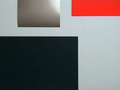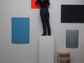 Various colored and shiny cardboard sheets are hung on a wall. The camera documents the creation of pictorial compositions from different angles, which are created by rehanging the sheets and rearranging the props - a white plinth and a small wooden staircase. The pedestal is moved with unavoidable noise or climbed up the stairs in order to rehang higher hanging arches. The composition of colored paper sheets and the white plinth is perceived as a surface or relief until the pictorial space is entered again. Then the proportions and space return to consciousness and the picture is changed by a new action.