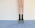 The silent video performance "Controlled meditation" unites supposed opposites, yet there is no specific time, place or person and no beginning or end. Here, movement and stillness, femininity and masculinity, childhood and adulthood are not mutually exclusive. The picture detail shows immobile female legs standing on a small stool and yet seeming to hang in the air. The tireless pendulum marks an abstract time and appears repeatedly between the legs of this unknown figure. Soap bubbles falling from above are ultimately her only contact.