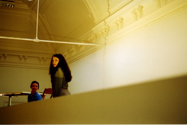 Utilizziamo la scatola nera costruita nella sala del lucernario della Kunsthalle di Basilea come un objet trouvé scenografico il cui soffitto diventa il nostro palcoscenico. Lo svolgimento della performance è determinato dalle posizioni nella stanza e dal materiale vocale.