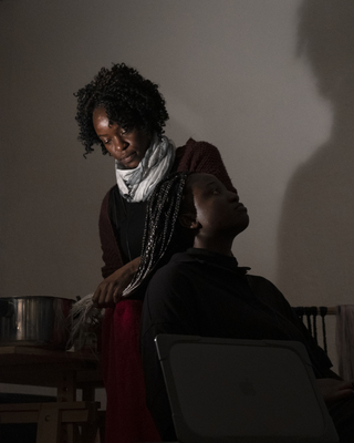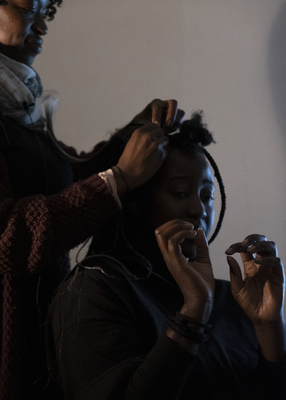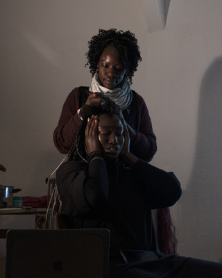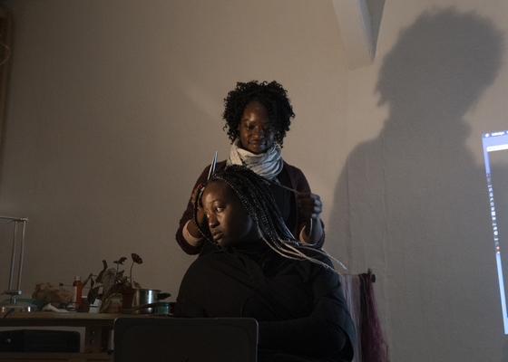 For HitStories, she therefore approached this question from a sculptural, but also for the first time, performative, point of view. Inviting us to visit her for a chat, a coffee or a meal in her proto-workshop/apartment, which was moved to Hit for four days, she also invited us to attend a ritual that she usually performs before her performances, in the privacy of her home – that of having her hair braided. By displacing this action and making it visible, she links this act to questions of integration, but also of alienation, transformation and fetishization, which are central to her practice.