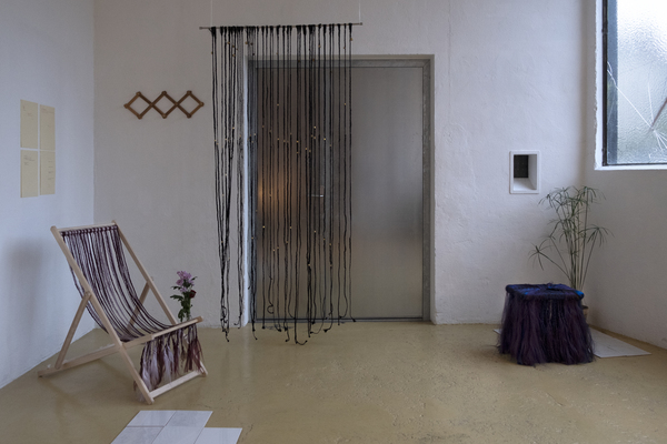 Sensitive to the history of the places that invite her, Davide-Christelle Sanvee has invested the space of Hit, initially Anne Minazio’s studio, as a hybrid place between studio and intimate space. Davide-Christelle has recently been questioning her relationship with hair, initially through “braid-objects”, between sculpture and domestic furniture, which were presented and used at Hit.