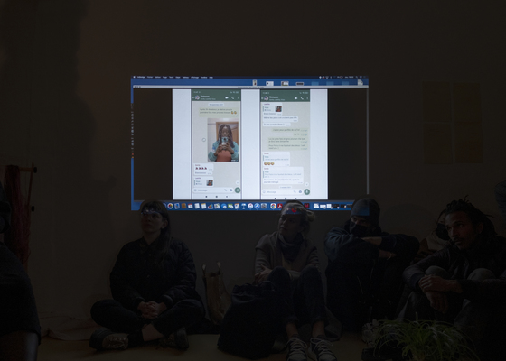 Pour HitStories, elle a donc abordé cette question d'un point de vue sculptural, mais aussi, pour la première fois, performatif. En nous invitant à lui rendre visite pour une conversation, un café ou un repas dans son proto-atelier/appartement, qui a été déplacé à Hit pour quatre jours, elle nous a également invités à assister à un rituel qu'elle accomplit habituellement avant ses performances, dans l'intimité de sa maison - celui de se faire tresser les cheveux. En déplaçant cette action et en la rendant visible, elle la relie aux questions d'intégration, mais aussi d'aliénation, de transformation et de fétichisation, qui sont au cœur de sa pratique.