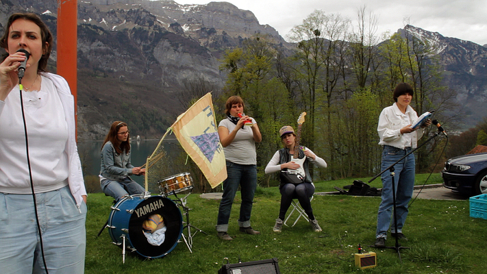 Nous avons parcouru la Suisse en voiture pendant une semaine. Nous avons fait des performances live et vidéo sur des aires d'autoroute, la tournée s'est terminée à Zurich, où nous avons donné un concert en public au "Heini" avec Les delicieuses, puis nous avons exposé du matériel de documentation sur cette semaine au Lokal International à Bienne.