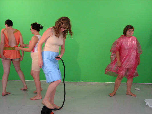 The collective [it sounds like rita] lived in an exhibition space for a week, they invited people, worked on costumes and made video performances. This resulted in a movie. Unfortunately, it remained unfinished.