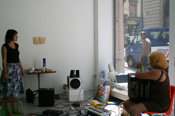 The collective [it sounds like rita] lived in an exhibition space for a week, they invited people, worked on costumes and made video performances. This resulted in a movie. Unfortunately, it remained unfinished.