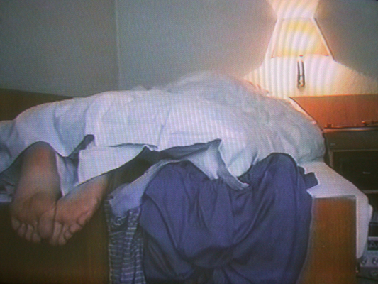 Vögtli s'enterre avec une caméra vidéo dans le lit d'une chambre d'hôtel pour pleurer pendant quatre heures, ce qui est retransmis en direct sur l'écran de télévision. La performance traite de l'intimité du deuil.