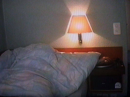 Matériel : chambre d'hôtel avec moniteur de télévision, caméra vidéo, tourne-disque, plaque de jeu sonore, enceintes, lampe de poche, papier WC.