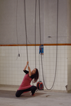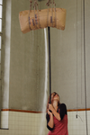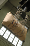 Matériel : sac de sucre de 50 kg, barre, cordes, grue industrielle