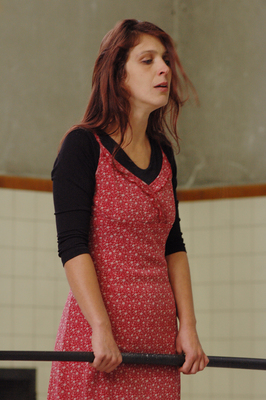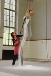 Dann schüttet die Künstlerin den intensiv roten Beerensaft in die Zuckermasse und wringt das Gazetuch mit ganzer Körperkraft. Die Gedanken angesichts der Bilder driften weiter hinab ins Dunkle: Es ist, als würden Därme gepresst, als würde Blut in dicken, schwarzen Schwallen auf den weißen Zucker rinnen. Vorbei ist es mit der süßlichen Schönheit des Anfangsbildes. Und genau dieser Bruch macht Bucher, Claudia;s performatives Werk so spannend: Sie bleibt nicht im Klischee einer weiblichen, „elfenhaften“ Person verhaftet, die schöne Bilder und Installationen mit spezifischen Verweisen auf weibliche Handlungsmuster und Materialien erschafft. Bucher geht weiter und führt auch den Betrachter an den Rand eines möglichen Abgrunds, in dem Dinge warten, deren Anblick einen schönen Traum in einen Alptraum verkehren können.